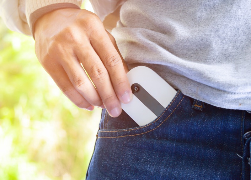 コンパクトで横長の形状は、ポケットに入るくらいの大きさで持ち運びしやすいのが魅力です。